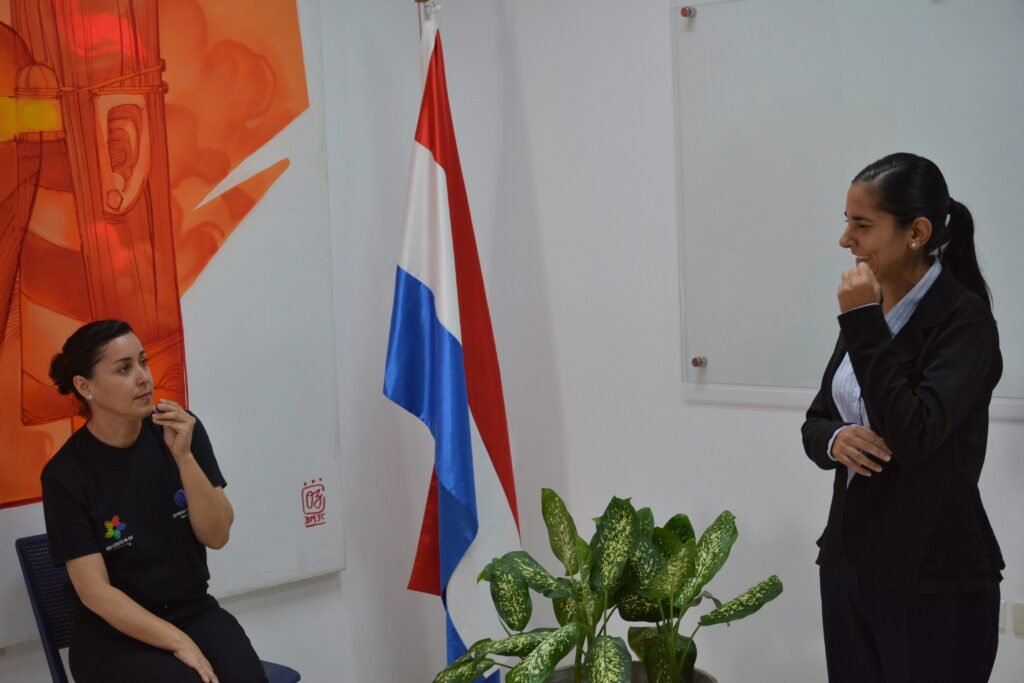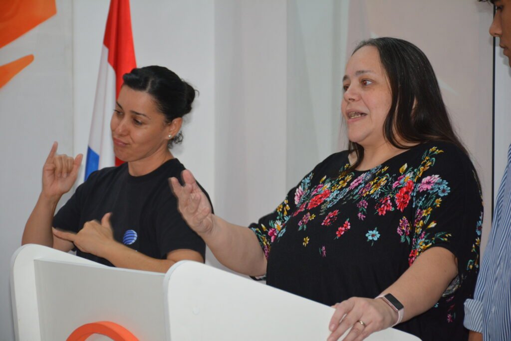 Uno de los momentos más emotivos fue la intervención de Delsy Duarte, persona sorda, quien relató lo que significó para ella trabajar en equipo con intérpretes profesionales y colaboradores mayoritariamente sordos en la traducción y producción de los materiales. Su testimonio reflejó el valor de la participación activa de la comunidad en proyectos de inclusión.